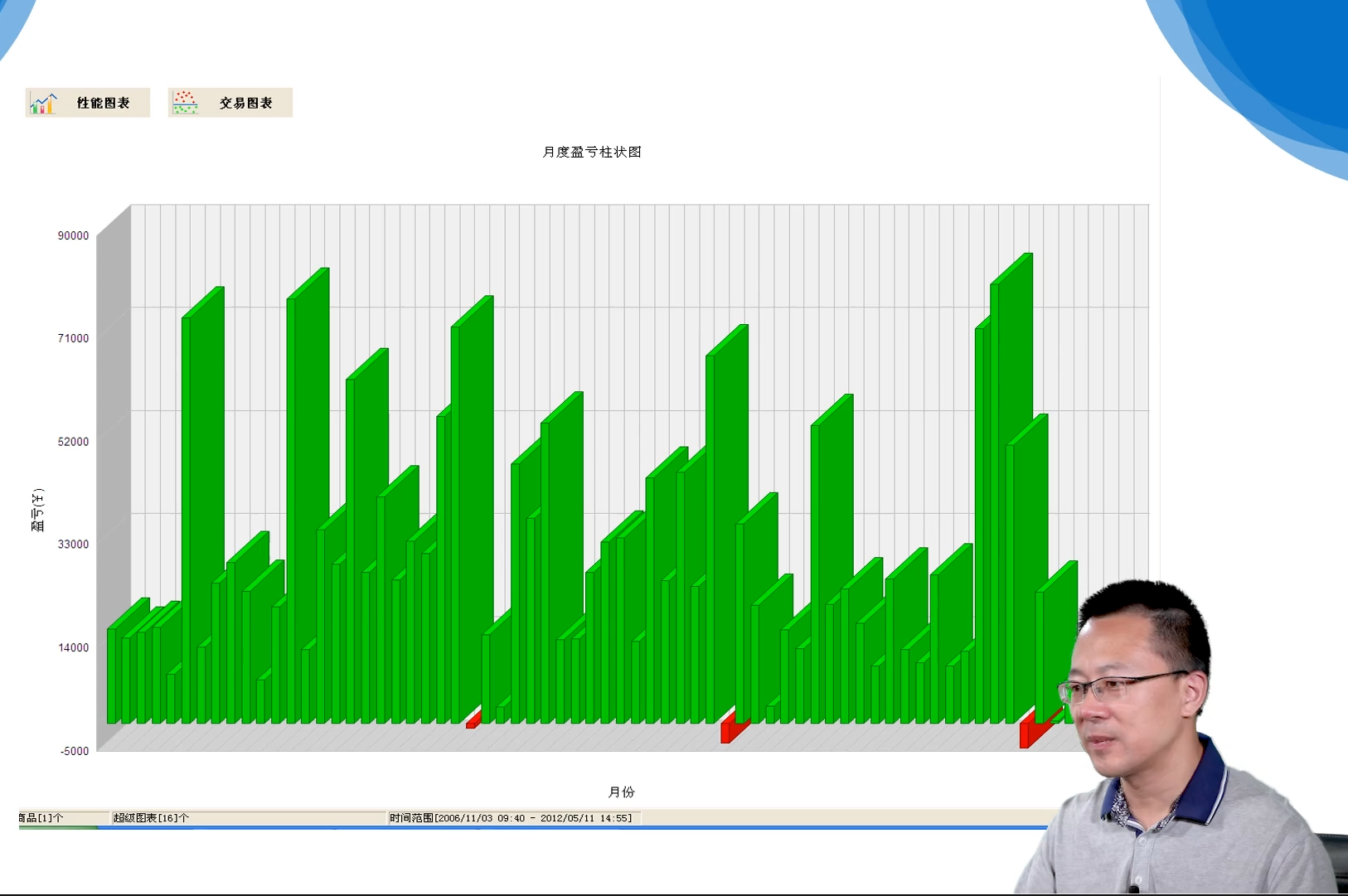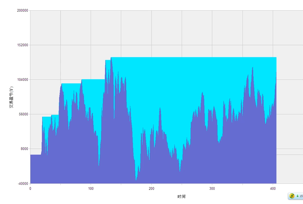 我们有了交易思想以后,设计交易模型展示在我们K线图上,我把整个的我们交易的资金绩效展示出来,这个是我们对这个模型做的一个系统的测试检验。
