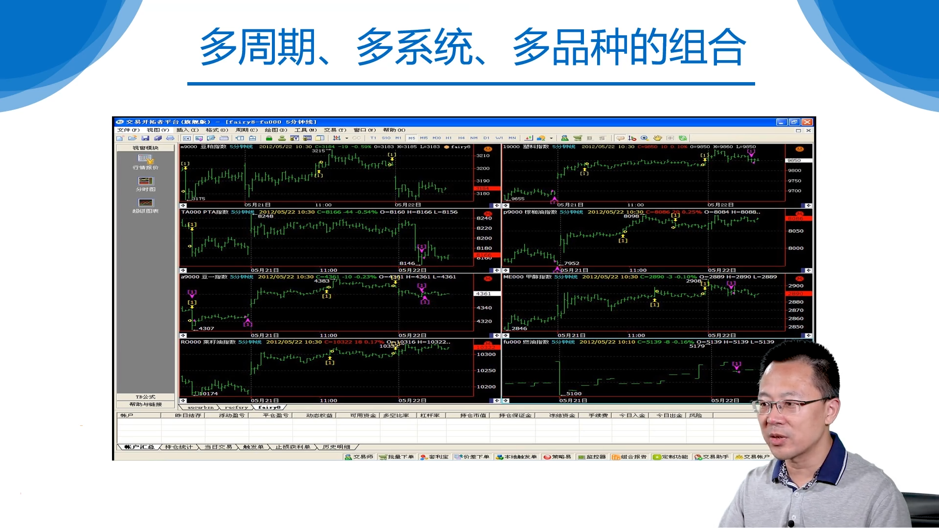 这个是展示的是一个多周期多系统多品种的一个组合,也就是说我们到最后我们一个完整的一个成熟的一个交易模型,应该是多周期、多系统、多品种的一个组合。