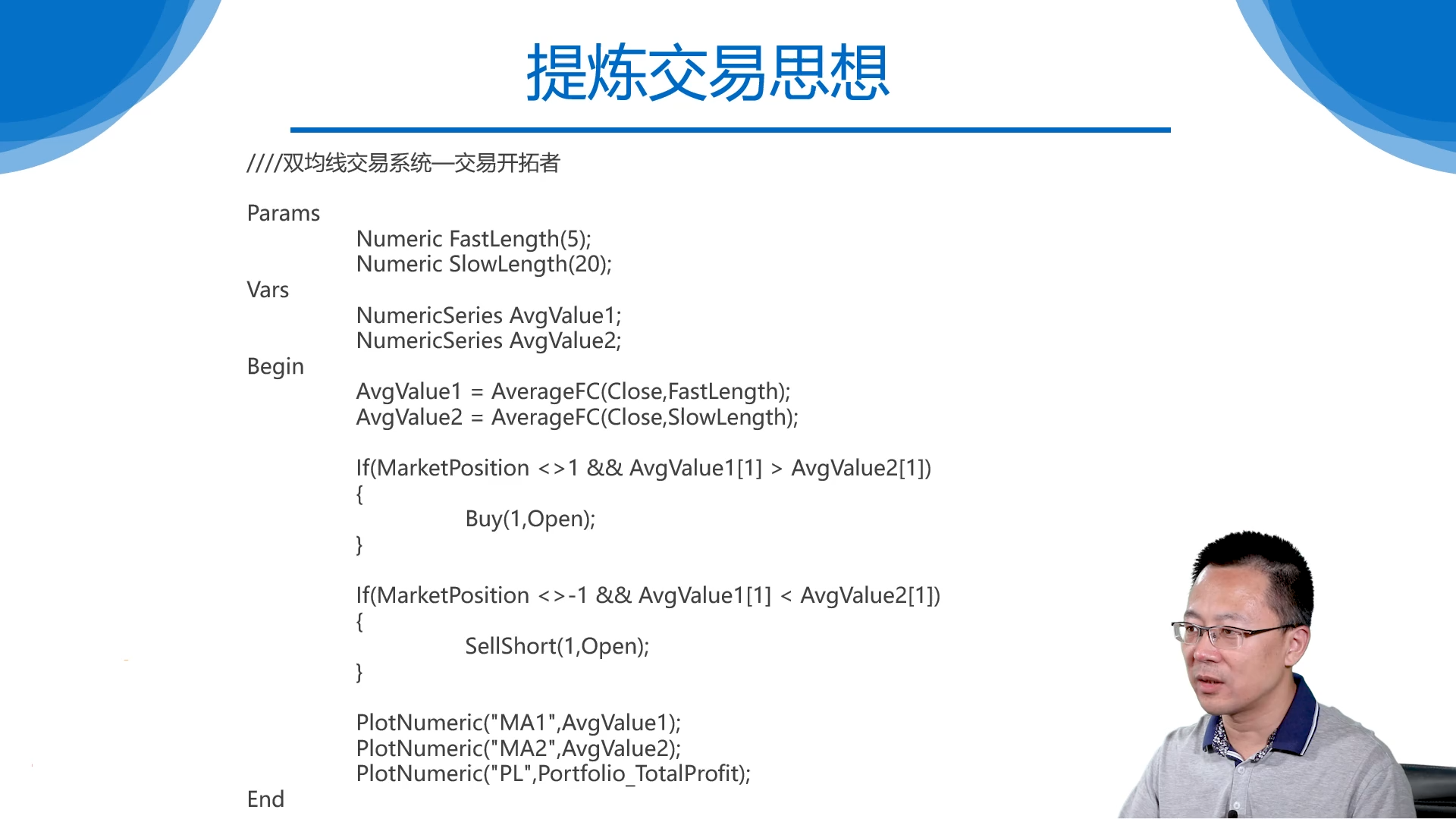 但是这个不是我们这节课讲的一个重点,我们这课讲的重点实际上就是说你通过你双均线的模型展示,把它几个要素来展示出来了。