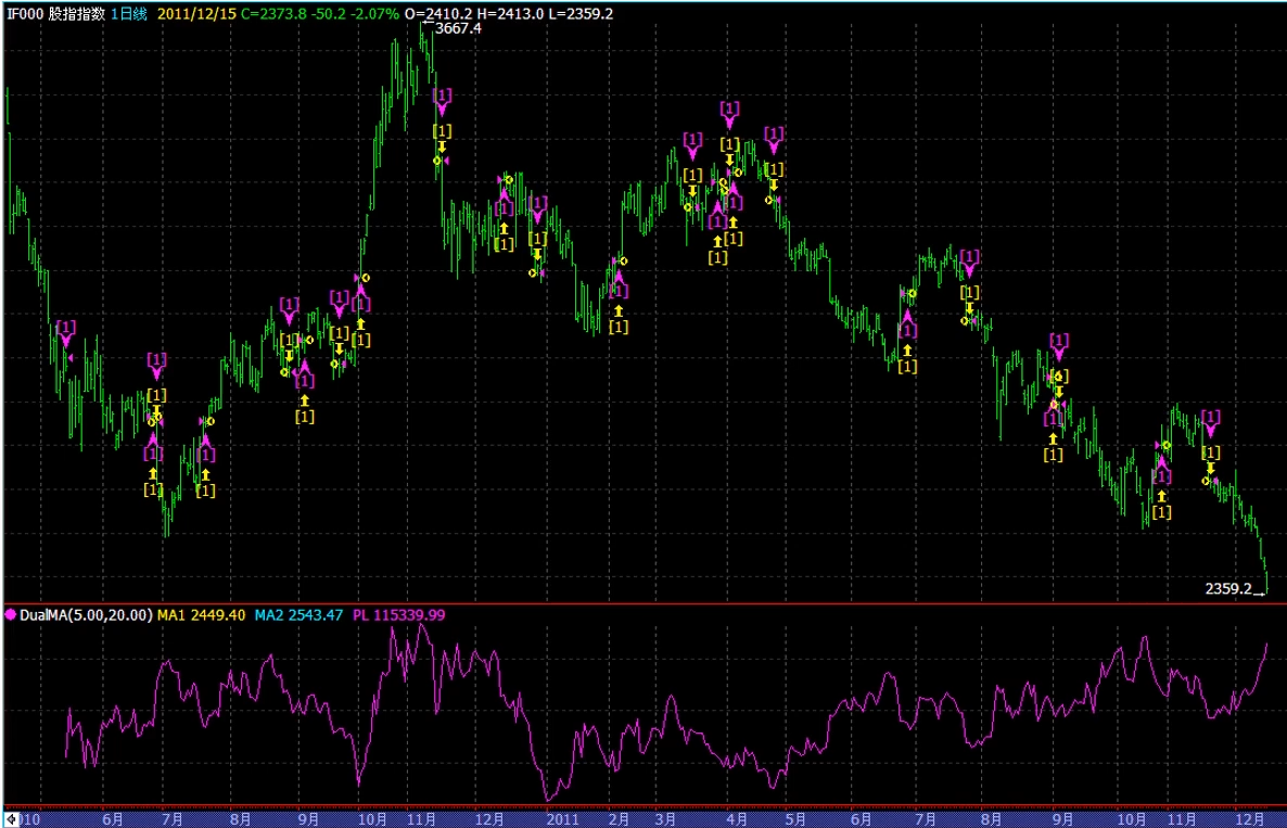 比方说5日线上穿20日线,那么我们就买入,或者下穿以后我们就卖出。