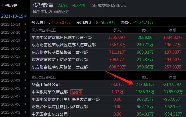 比如传智教育,10.14日买入2136万,10.15日就卖出2170万,一定程度上造成连板失败。