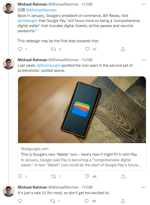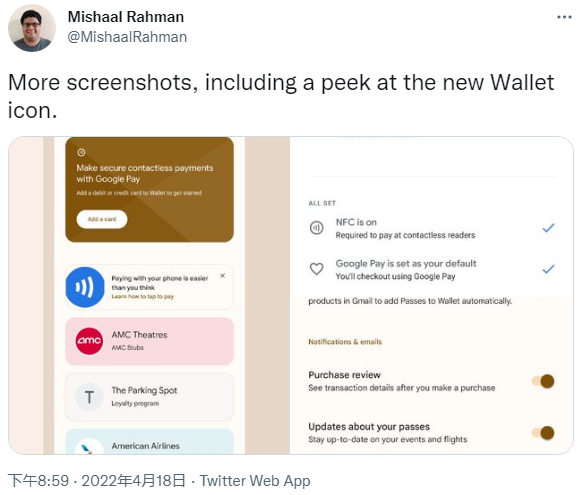@MishaalRahman 表示该应用仍将用于非接触式支付。