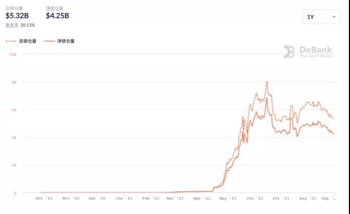 在DeFi基金的支持下,Polygon生态快速壮大。根据DeBank的数据,8月31日Polygon总锁仓价值(TVL)达到53.2亿美元,相比4月初的7780万美元,增长了6738%。