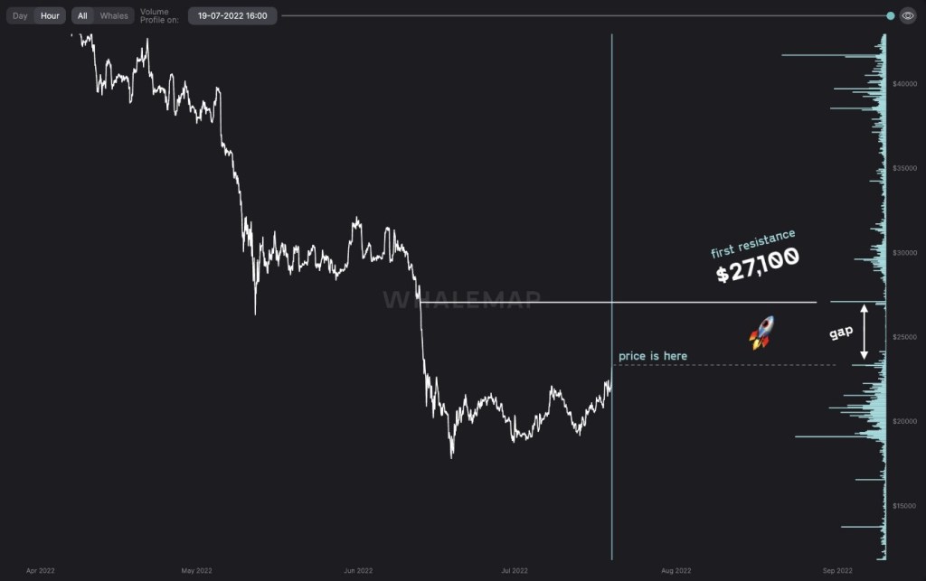 27,100 美元应该是我们前进的第一个阻力位。当前价格与 27,000 美元之间存在巨大供应缺口。