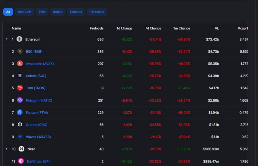 尽管暴跌超过 60 亿美元,但 Solana 仍保持其作为锁定价值最多的第四个区块链的地位。